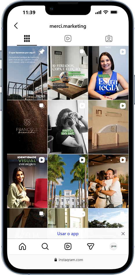 A Merci é uma consultoria boutique de marketing, situada em Belo Horizonte, que ajuda empresas a construírem posicionamento, presença e crescimento com estratégia e performance.
